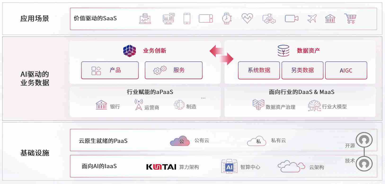 数字时代,,,围绕企业数字化转型的关键要素,,,,Z6尊龙时凯数码开创性的提出数云融合战略和技术体系框架,,,,着力在云原生、、、、数字原生、、AI原生和信创产业上架构产品和服务能力,,,为处在不同数字化转型阶段的快消零售、、、汽车、、、、金融、、、医疗、、政企、、教育、、运营商等行业客户提供泛在的敏捷IT能力和融合的数据驱动能力,,,构建跨界融合创新的数字业务场景和新业务模式,,,助力企业级客户建立面向未来的核心能力和竞争优势,,,,全面推动社会的数字化、、智能化转型升级。。。。