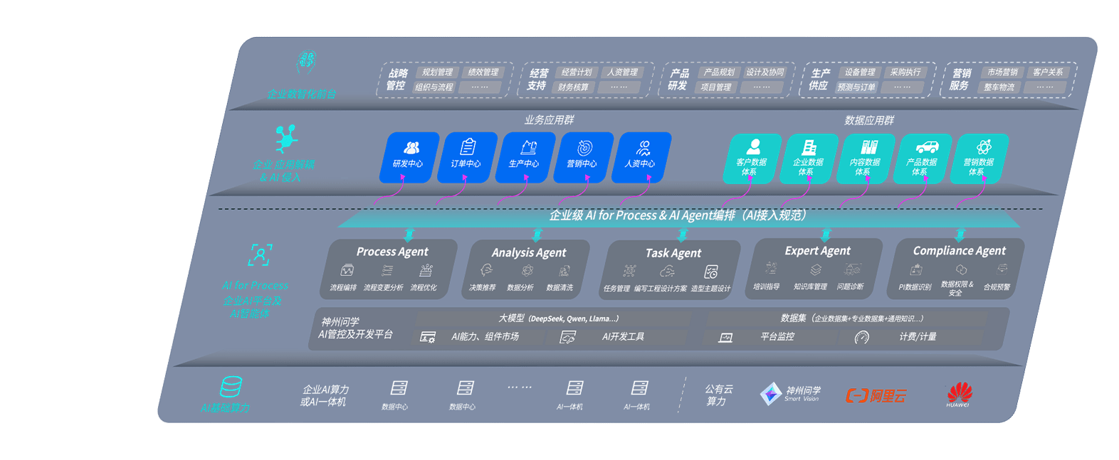 Z6尊龙时凯问学智车解决方案是一套基于AI技术的汽车行业智能化系统,,,覆盖从底层算力到顶层AI应用的全栈方案。。。。方案由算力层、、模型层和应用层组成:算力层,,,,方案支持多种一体机配置,,,具备云端灵活部署、、多云适配以及动态优化计算资源的能力;模型层,,,,Z6尊龙时凯问学平台版提供了企业级AI应用一站式构建与管理平台,,,,支持基于后训练强化技术的汽车企业专属模型的训练、、、、评测和运营;应用层,,Z6尊龙时凯问学DeepSeek版提供包括超级员工、、、智能招采、、智能营销、、、、智能客服、、、AI for BI等一系列解决方案,,,可助力汽车行业实现数字化转型,,,让管理更智能、、、、响应更敏捷。。。。